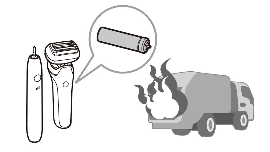 リチウムイオン電池は、廃棄のしかたを誤ると、ゴミの運搬中や処理施設などで、破裂や発火の原因となります。