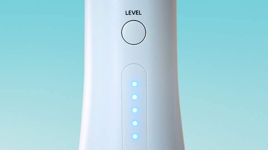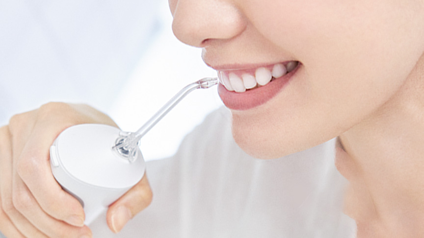水圧がしっかりと歯ぐきに伝わるよう、ノズルは歯や歯ぐきから浮かせてご使用ください。心地よく感じる強さの水流でやさしくケアすることがポイント。歯列矯正中の歯ぐきにも使えます。