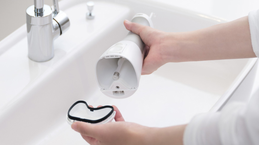 まず、口の中にノズルを入れ、軽く口を閉じてから使用すると、水の飛び散りを防ぐことができます。