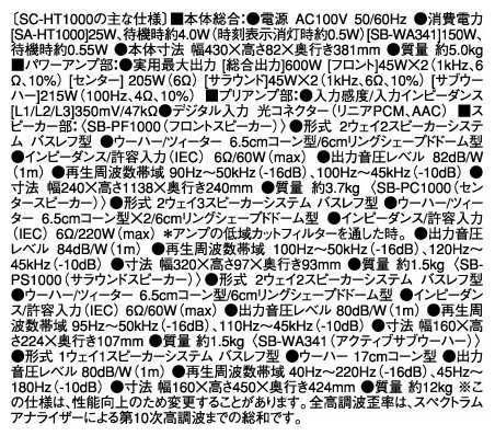 | SC-HT1000の主な仕様(チューナー部・ディスク部は除く) | |||