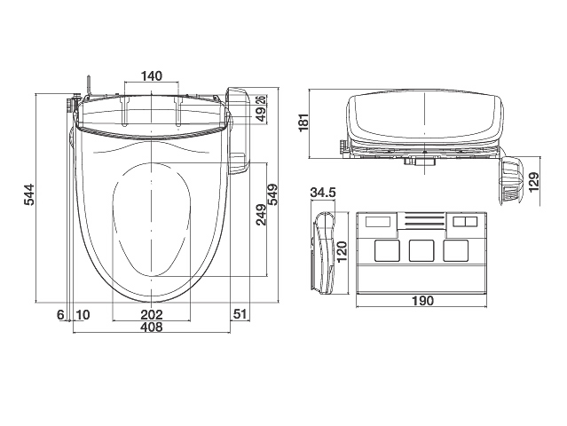 | 暖房便座 | 標準表面温度 | 非使用時:「切」室温、「切」以外18℃以上 使用時:「切」室温、3段切替「低」34℃/「中」38℃/「高」40℃ |