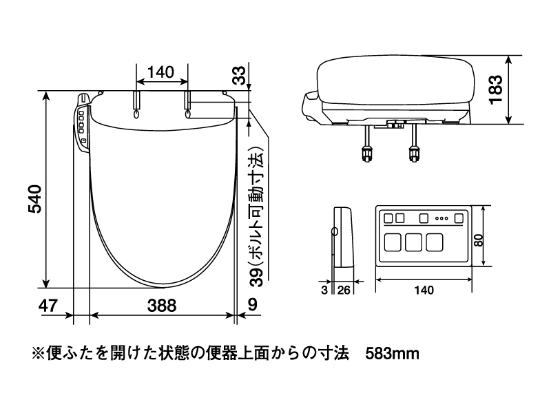 | 暖房便座 | 標準表面温度 | 「切」室温、3段切替「低」34℃/「中」38℃/「高」40℃ |