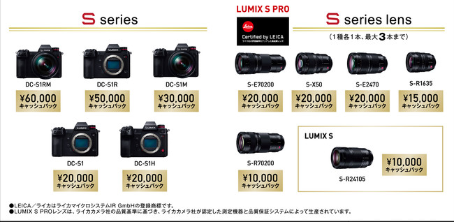 パナソニック株式会社は、対象のデジタルミラーレス一眼カメラ(ボディ/レンズキット)、交換レンズをご購入の方に最大120,000円をキャッシュバックする「LUMIXキャッシュバックキャンペーン」を2020年12月4日(金)より実施します。