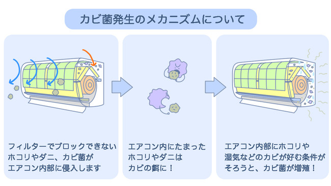 ■秋カビはなぜ発生する!?エアコン内部の湿気とカビ菌のエサであるホコリがカビ発生の原因に