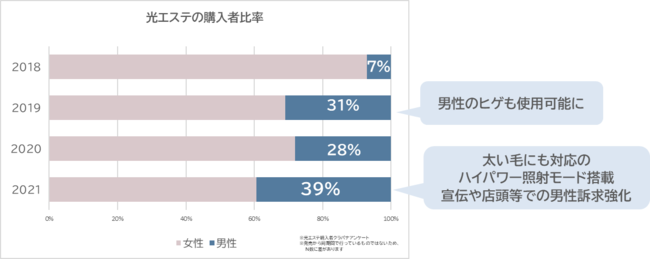 実際にパナソニックでも、ムダ毛ケア商品として2009年から発売している「光エステ」の購入者層や所有方法に変化が表れています。
