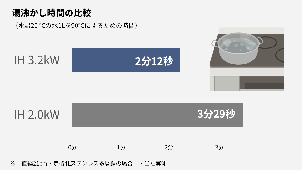 ※3:直径21cm・定格4Lステンレス多層鍋の場合。水温20℃の水1Lを90℃にするまでの時間。