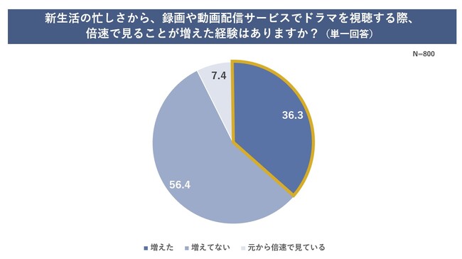 ■新生活の忙しさから、3分の1以上の人がドラマを「倍速視聴」する機会が増えたと回答。