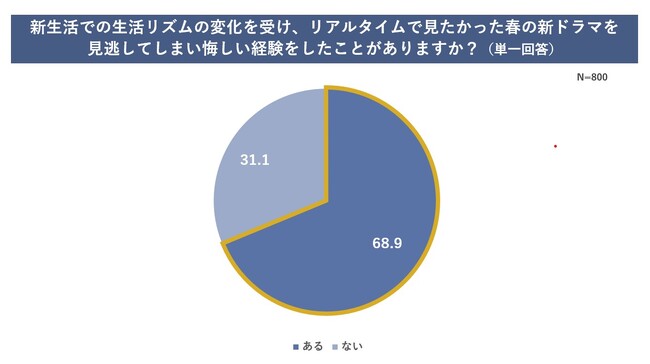 ■新生活が始まり、生活リズムの変化を受け、春の新ドラマを見逃して悔しい思いをした人約7割。