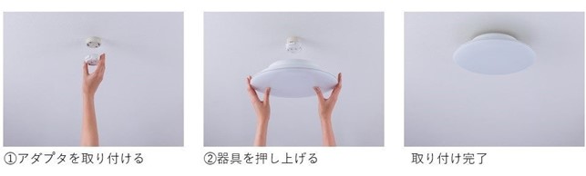 アダプタを取り付けて、 器具を押し上げるだけの2ステップでかんたんに取り付けできます。コンパクトなのに、 6畳、8畳のお部屋も明るく照らせます。またシリコンで本体とカバーが密閉されており、一体構造になっていますので、虫やホコリが入りにくく、お手入れはサッと拭くだけです。さらに蛍光灯からコンパクトシリーズに取り替えると消費電力を大幅に削減できるので、8畳の場合、電気代が年間で約2,520円、10年で約25,200円もお得になります(当社比)