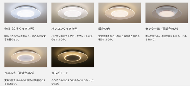 センター光とパネル光、2つの光でお部屋を照らし分け。香りや音楽で気分を変えるように光の照らし方を変えることで、部屋の表情、自分や家族の気分まで変えられます。例えば、パソコンくっきり光を使えばパソコン画面が見やすい光でやる気モードに、センター光を使えば周囲を暗めにしたムードある光でくつろぎ気分など切り替えができます。