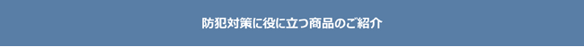 ここでご紹介した商品は、侵入や盗難などの犯罪を阻止することや安全を保証するものではありません。万が一、損害が発生した場合、当社は責任を負いかねますのであらかじめご了承ください。商品のご使用と合わせて、施錠・戸締り等の防犯対策を行うことをおすすめします。
