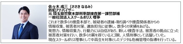 【防犯アドバイザー 佐々⽊成三さん コメント】