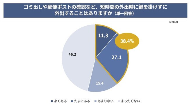 ■約4割がゴミ出しや郵便ポストの確認など、短時間の外出時に鍵をかけていないことが判明。