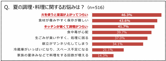 ■夏の調理・料理に関する家事の悩みNo.1は”キッチンが暑い”