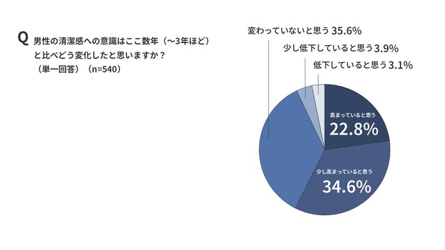 ■3年前と比較して「清潔感」への意識が高まっていると感じている人は半数以上。