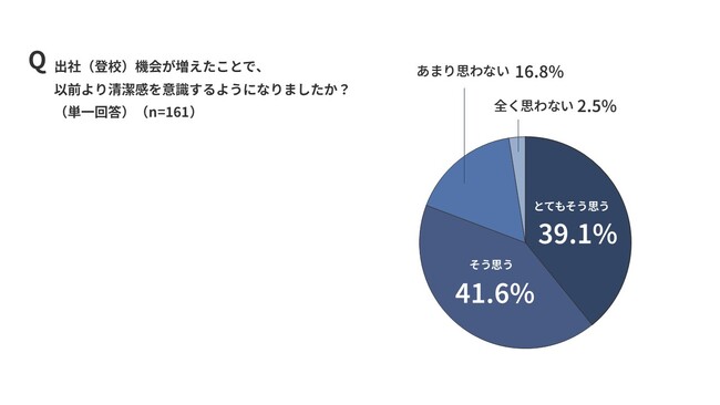 さらに出社・登校機会が増えたことで「清潔感」を意識するようになった人は8割以上存在。