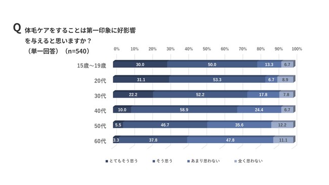特に10代~20代は8割となり、体毛ケアは「第一印象」を好ましいものにする重要な要素といえる。