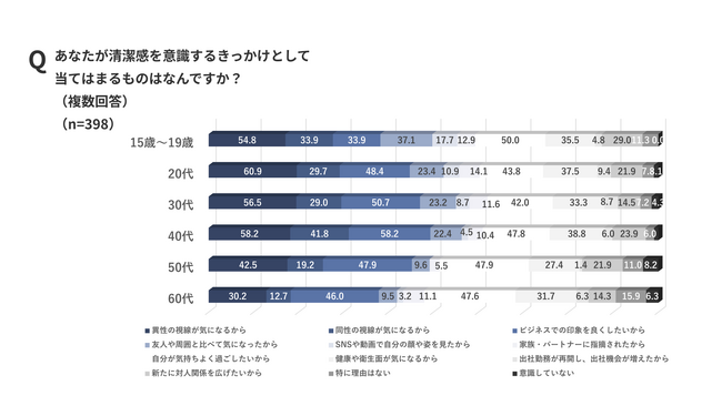 また世代別傾向として、10代は「友人や周囲と比べて気になったから」が37.1%、40代は「同性の視線が気になるから」が41.8%と、年代によって「誰に見られるか」の基準の違いが明らかになりました。