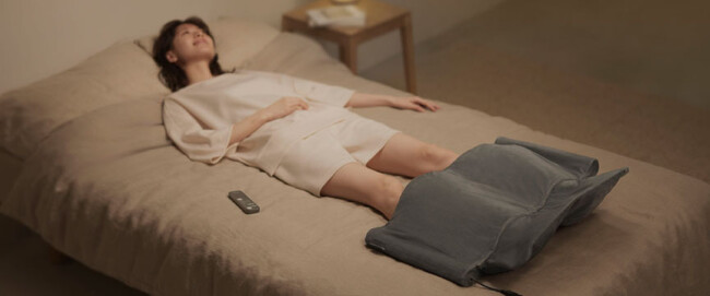 脚を入れるだけで、足首からふくらはぎまでぐるっと包み込んで別格マッサージ。リモコン操作で寝ころんだまま使用でき、おやすみ前をほっとひと息つける幸せなひとときに。