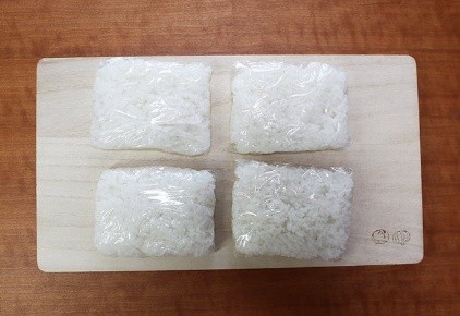 ごはんは冷えていく段階で水分が抜けておいしさが失われていきます。そのため、可能な限り熱いうちにラップに包み、水分を逃がさないことが大切です。包む際は、厚みを均等に平らに整え、隙間なくぴったりとするのがポイント。また、ごはんをつぶさずに湯気の水分を閉じ込めるように包むと、解凍したときにふっくらとおいしいごはんに仕上がります。