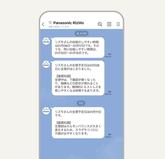 生理や体調情報をLINE公式アカウントを通じて家族やパートナーと自動共有。「言いづらい」を解消し、自然なコミュニケーションを支援する。パートナーはLINE招待リンクで登録可能。