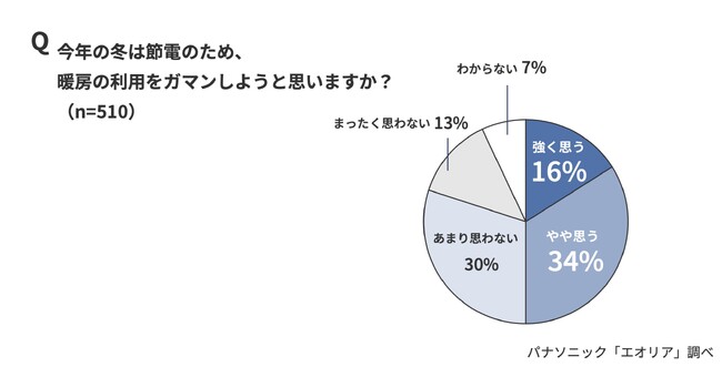 さらに、今年の冬の暖房ガマン意向についても、「強く思う」16%、「やや思う」34%で、50%が今冬も“暖房ガマン派”であることが明らかになりました。