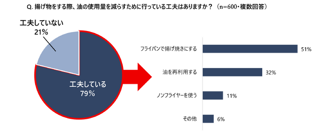 さらに79%の人が「少ない油で揚げる工夫」をしていることが判明