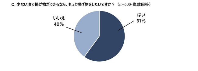 さらに、「少ない油で揚げ物ができるなら、もっと揚げ物をしたい」と答えた人は61%にのぼりました。