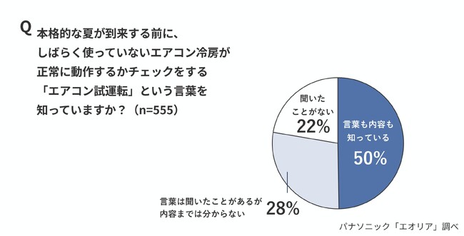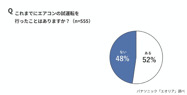・エアコン試運転、「内容まで知らない」・「聞いたことがない」50%、経験率は52%