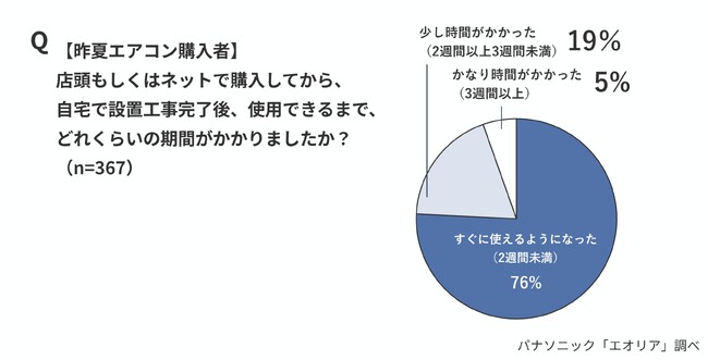 ・昨年夏(6~8月)にエアコンを修理した人の3割(36%)、購入した人の2割(24%)が、発注から使用まで2週間以上かかった『エアコン待機者』に