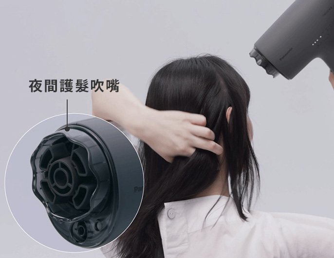 在頭髮7成乾左右的狀態下,安裝夜間護髮吹