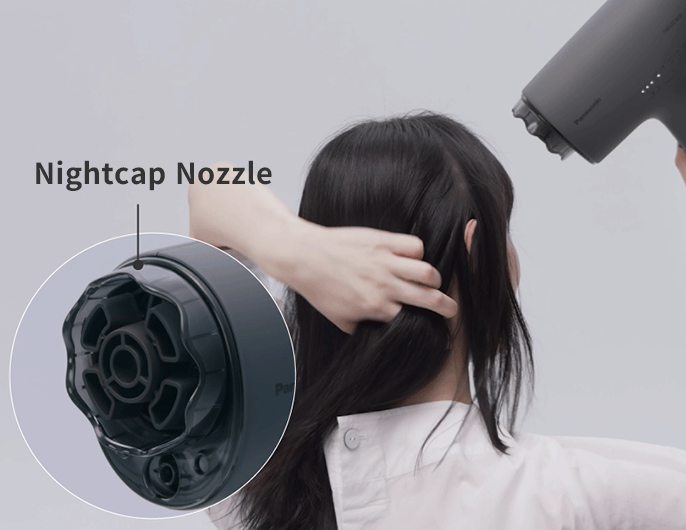 Attach the Nightcap Nozzle when your hair is about two-thirds dry.