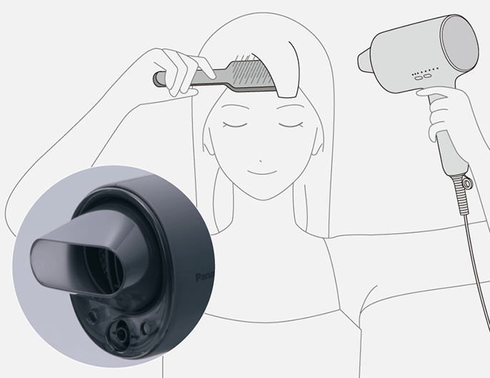 Attach the Quick-dry Roots Nozzle and start drying your hair.