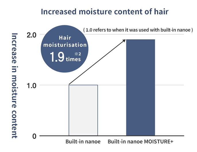 「nanoe MOISTURE+」 moisturises hair 1.9 times better*2