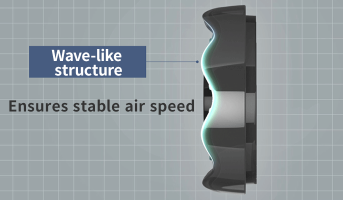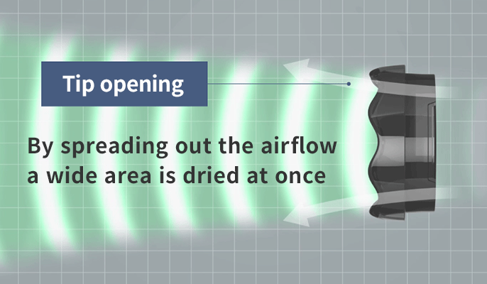 The tip opening spreads out the airflow, allowing a wide area to dry at once