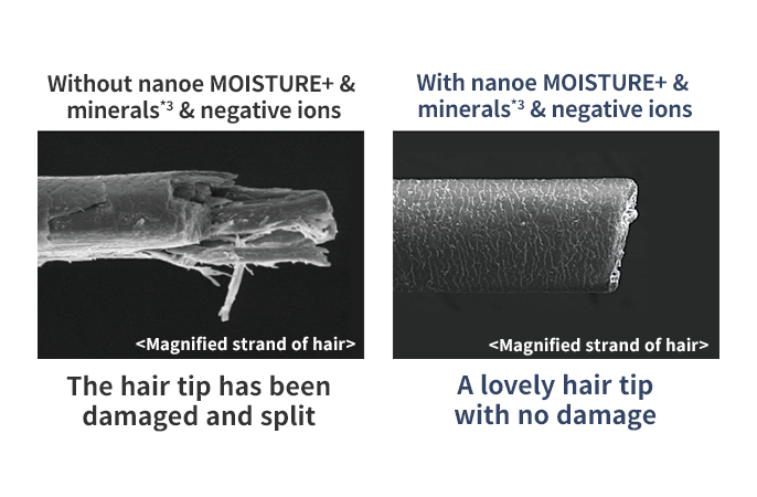nanoe MOISTURE+ & minerals*3 & negative ions prevents friction damage