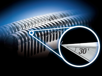 The outer blade is 41μm in its thinnest area. This ultra-sharp blade cuts each hair right at the root, achieving a close shave.