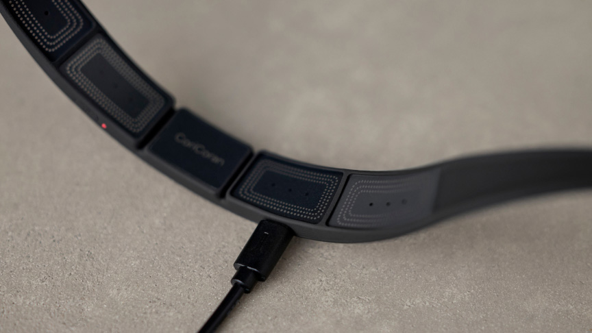 高周波デバイス4個分が患部にフィットし、肩まわりのコリやすい筋肉の血行を促進。肩コリを改善します。
