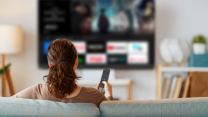 テレビをつけると、映画、アニメ、配信中のライブ——それぞれの「観たいもの」が並ぶホーム画面。