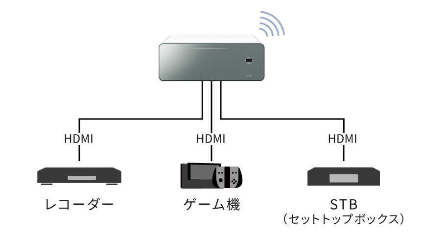 チューナー部にHDMI接続したレコーダーやゲーム機の映像をワイヤレスで送信