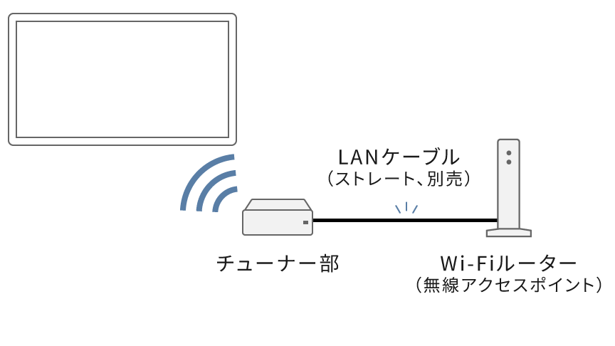 モニター(テレビ)とチューナー部間の直接無線接続は5GHz帯を使用しています。