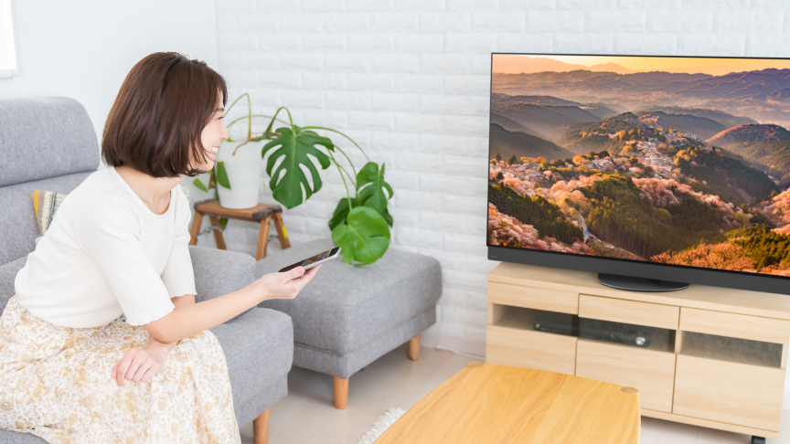 スマートフォンやカメラとつないだり、画面そのものを空間演出に使ったり。テレビの役割が、自然に広がっていきます。