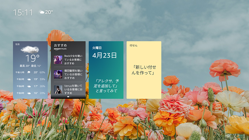天気予報の表示やAmazon Musicのおすすめを再生可能