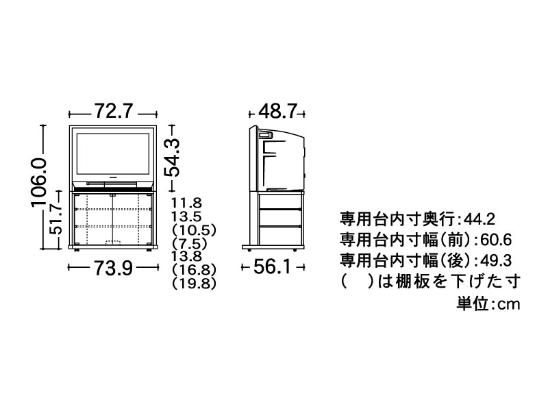 | 本体寸法 幅×高さ×奥行(cm) | 72.7×54.3×48.7 | ||