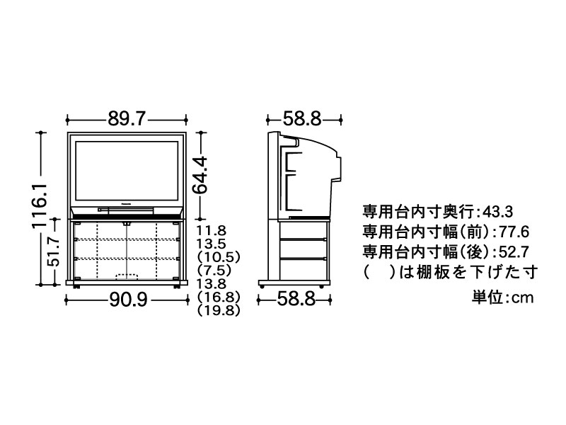 | 本体寸法 幅×高さ×奥行(cm) | 89.7×64.4×58.8 | ||