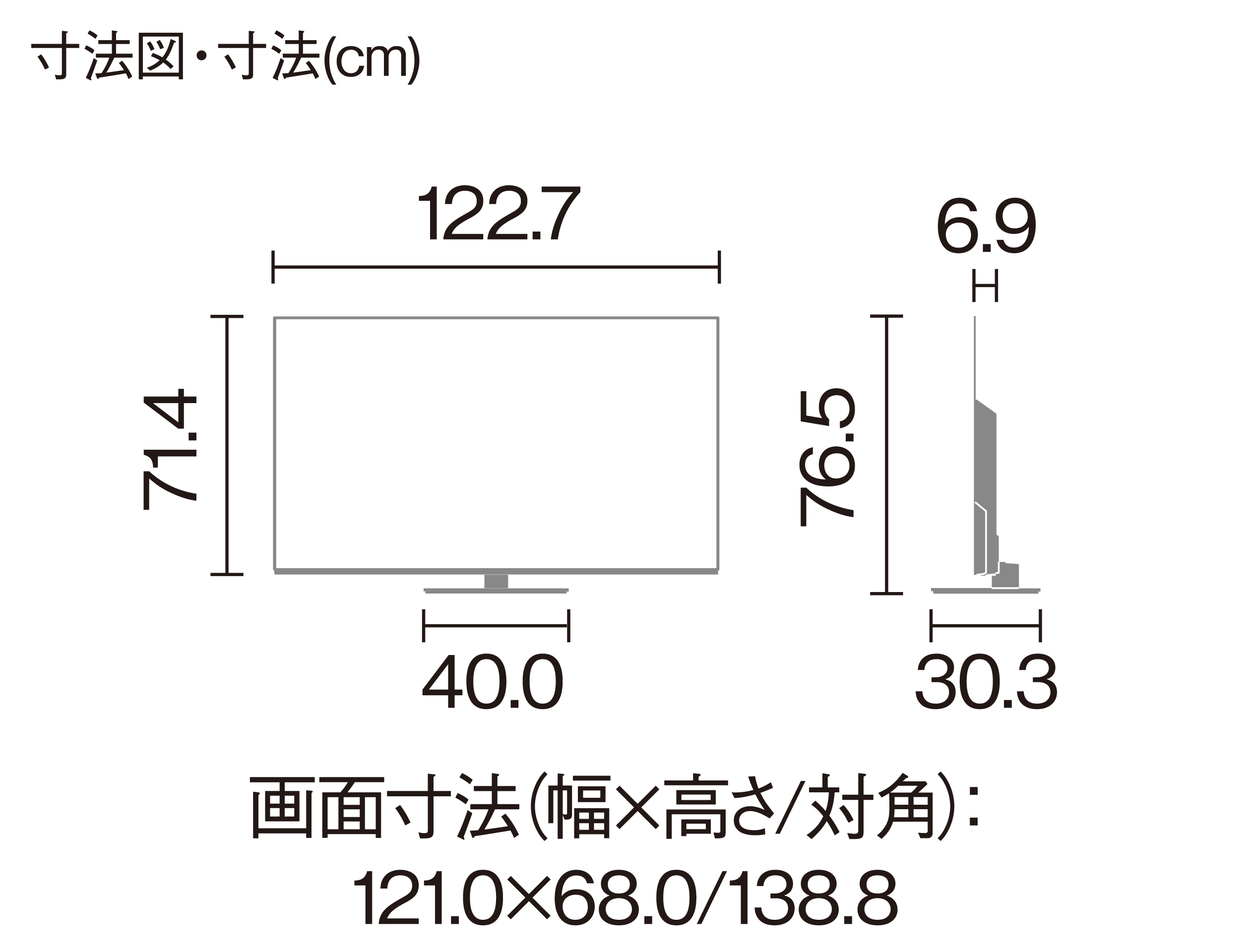 画面寸法 幅121.0cm 高さ68.0cm 対角138.8cm
