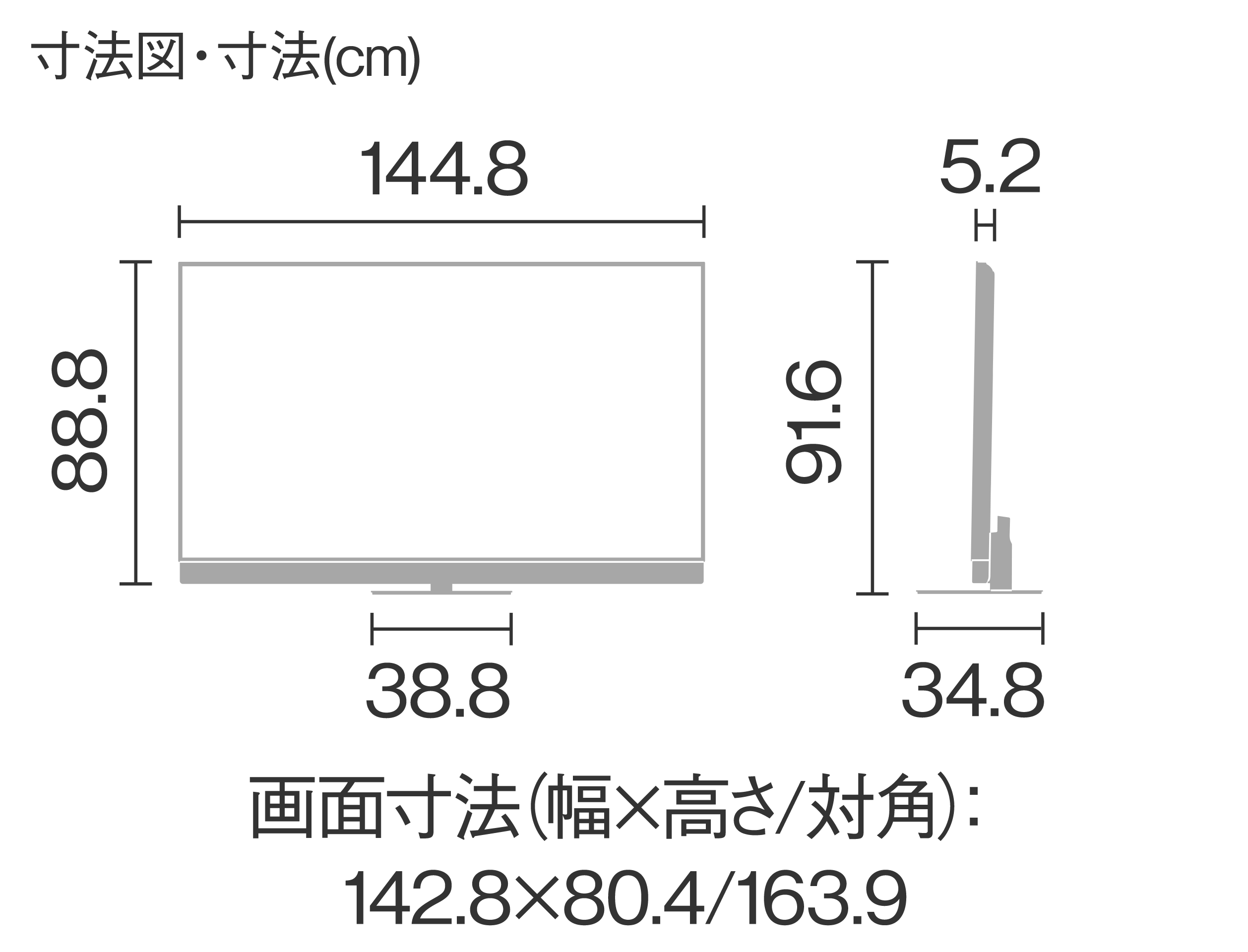 画面寸法 幅142.8cm 高さ80.4cm 対角163.9cm