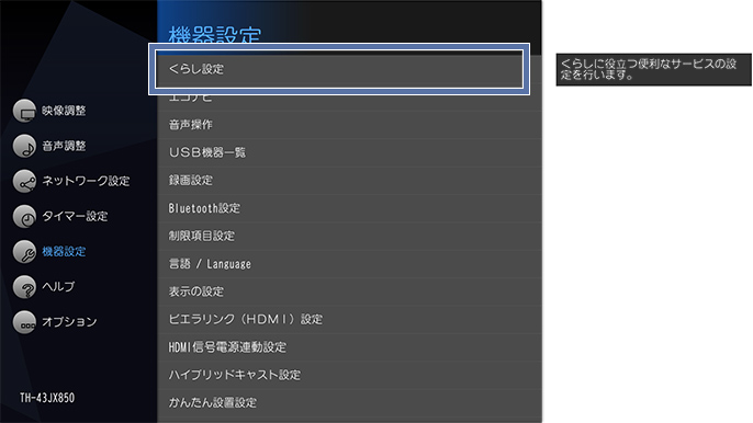 2-1.「メニュー」→「機器設定」→「くらし設定」
