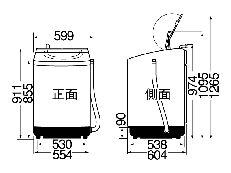 | 総外形寸法(幅×高さ×奥行)(給・排水ホース含む)