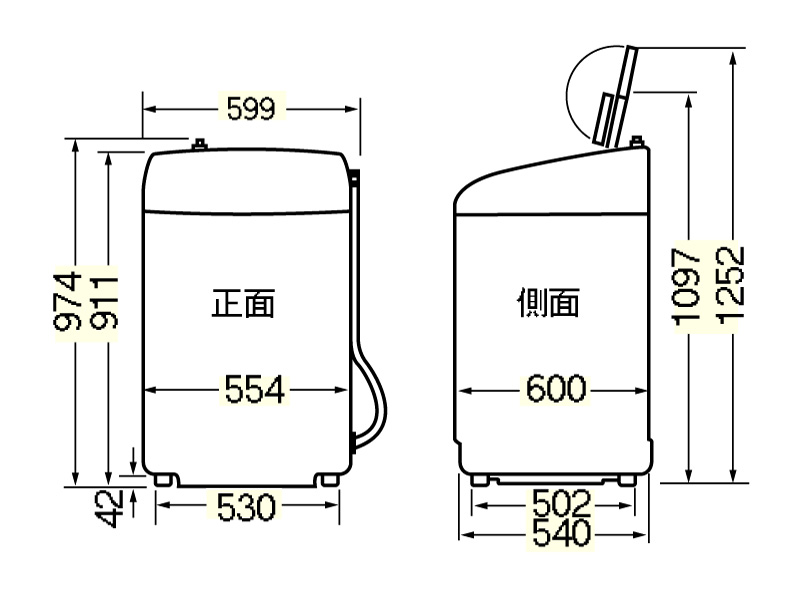 | 総外形寸法(幅×高さ×奥行)(給・排水ホース含む)